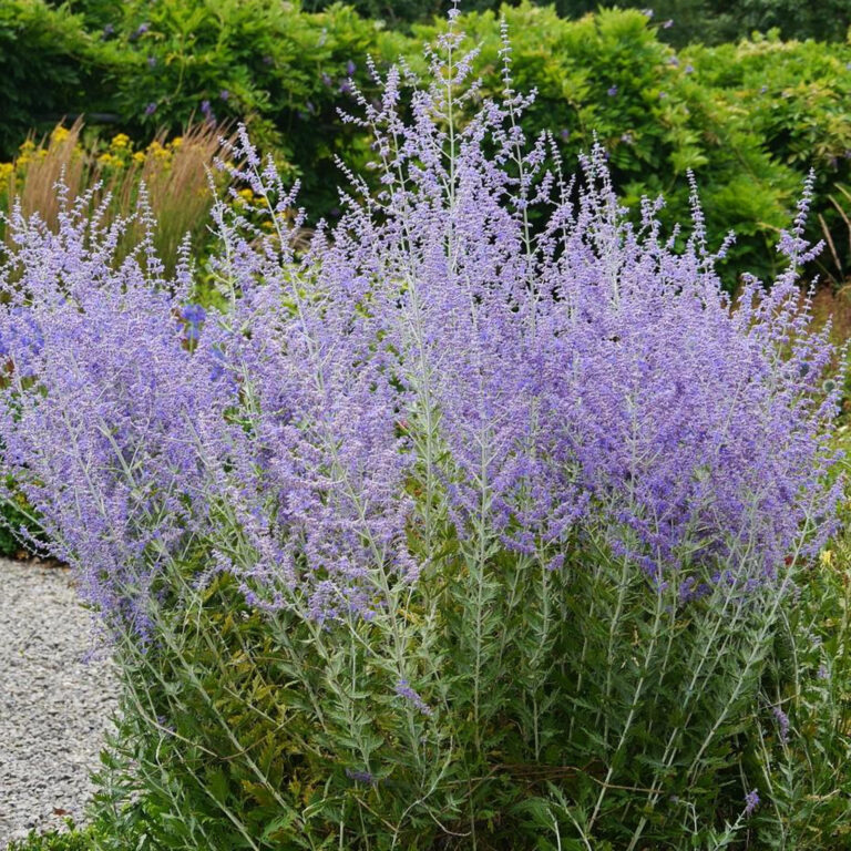 Daudzgadīga, kompakta un blīvi sazarota perovskia. 36-56 cm gara. Zied no jūlija līdz septembrim.