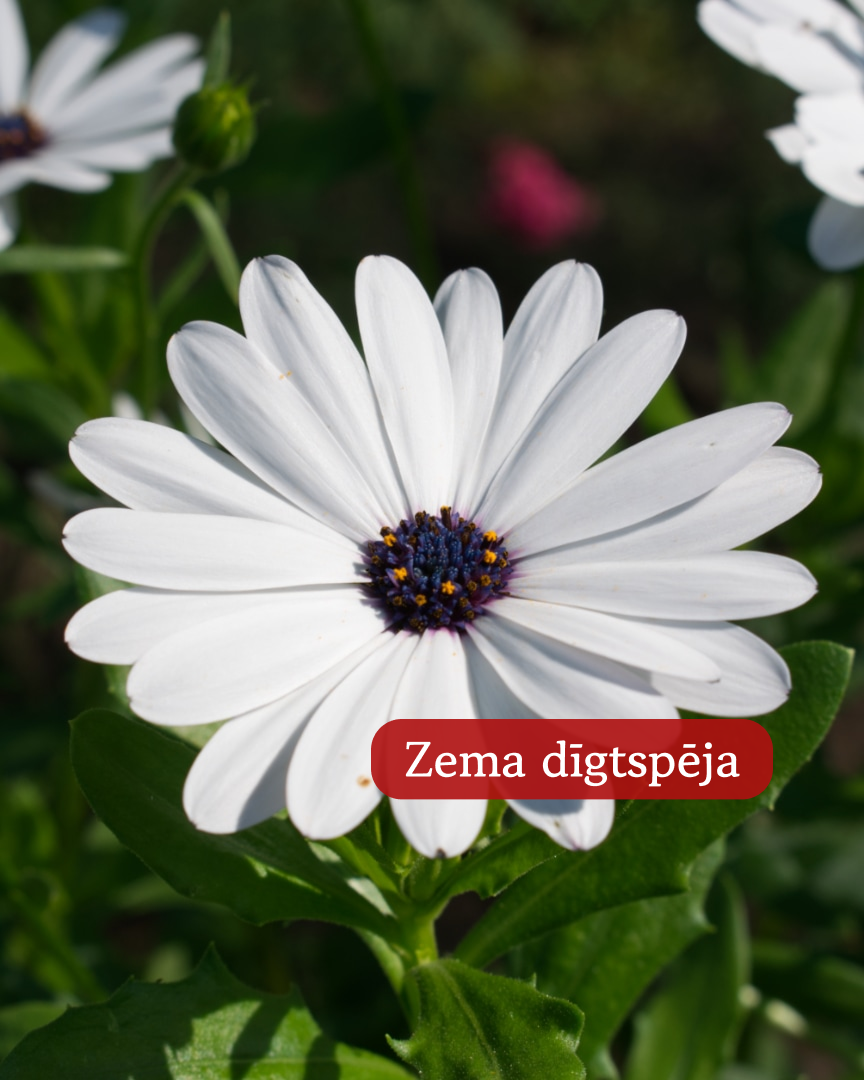 Sauktas arī par Spāņu Margrietiņām. Ziedu izskatas ir atbilstošs nosaukumam – zilgans viducītis ar baltām ziedlapiņām. Zieds atplaukst tikai dienas laikā. Zied bagātīgi un ilgstoši no jūlija līdz salnām. Sēj no aprīļa līdz jūnijam. Piemērotas grieztajiem ziediem un audzēšanai lielos podos. Podus uz ziemu iespējams ienest iekštelpās pārziemot.